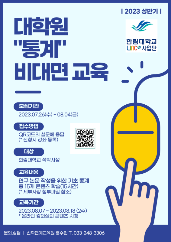 한림대학교 LINC 사업단에서 대학원 통계 비대면 교육을 실시하니,