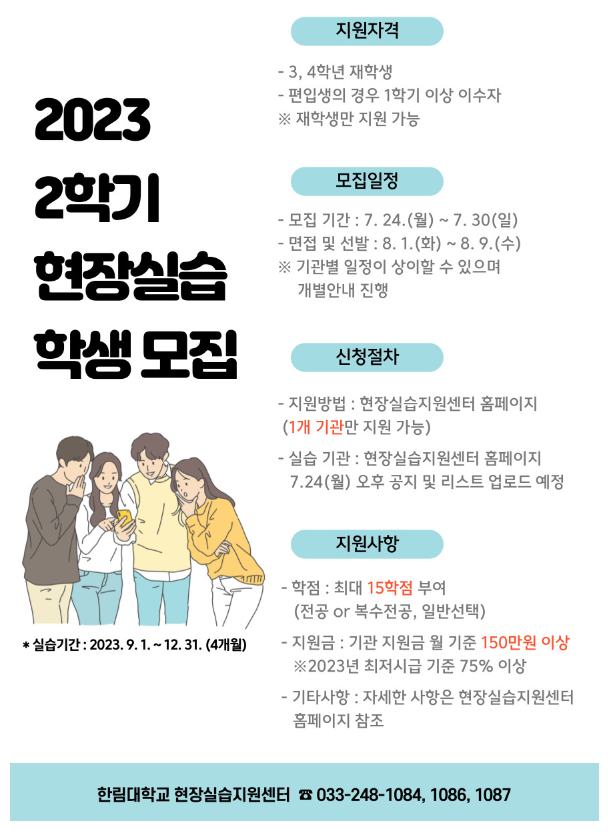 2023학년도 2학기 현장실습학기제 학생 모집 관련 안내를 드리오니