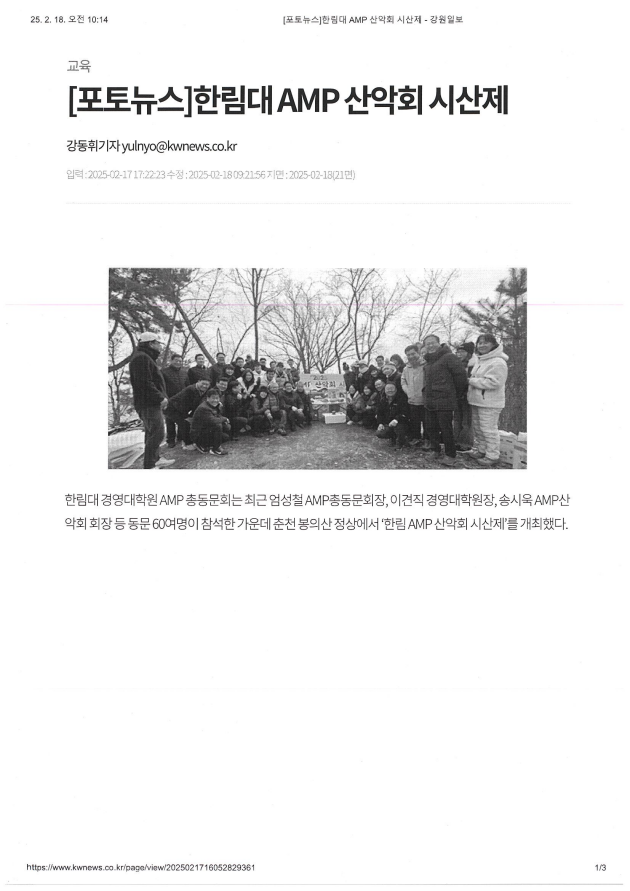 한림대 AMP 산악회 시산제 개최
